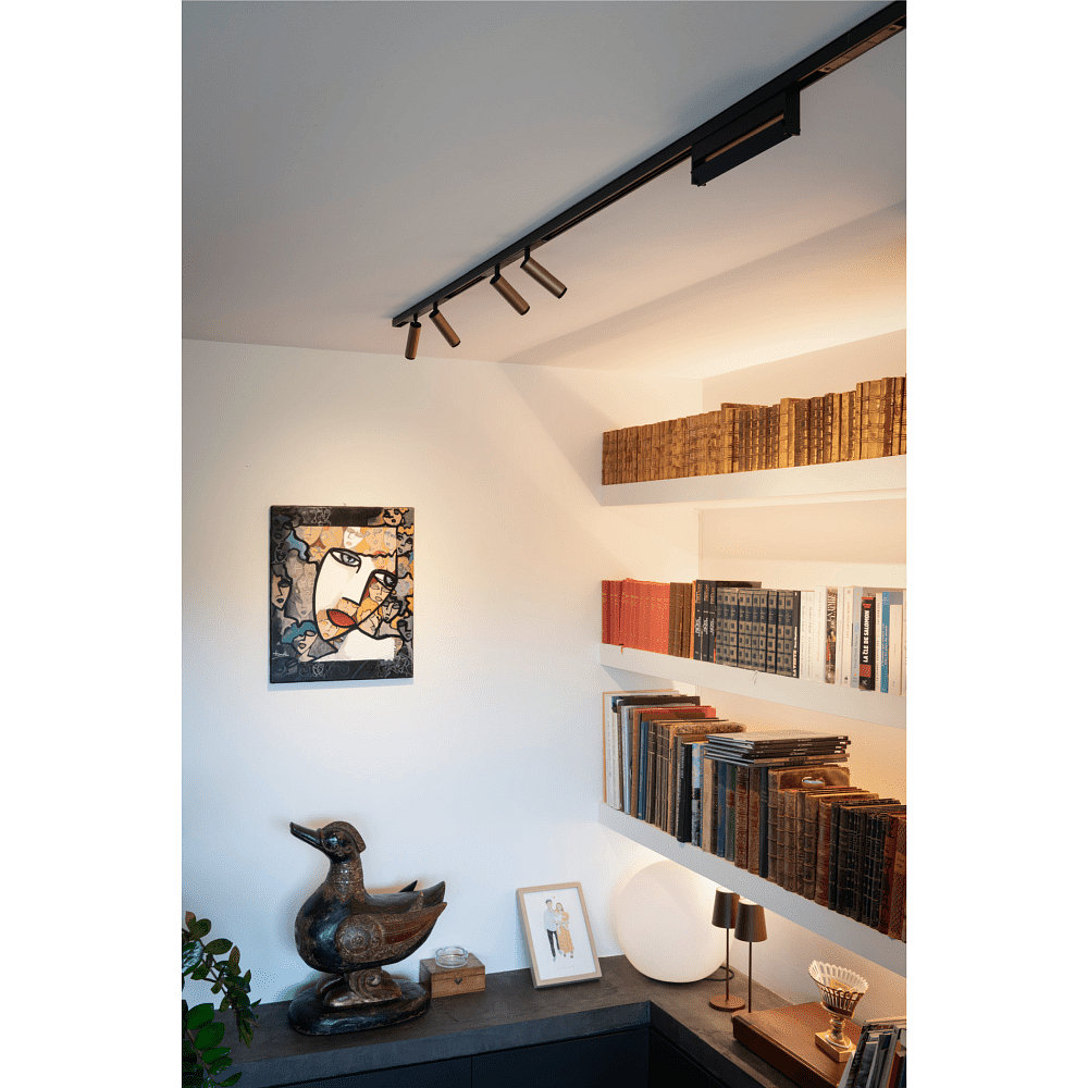 Il proiettore è progettato per essere montato su un sistema a binario e pesa solo 0,12 kg. Con una tensione di esercizio di 48V, il proiettore è ideale per l'uso in soggiorni, uffici o altre aree interne. La classe di protezione 3 e l'indice di protezione IP20 garantiscono un utilizzo sicuro.