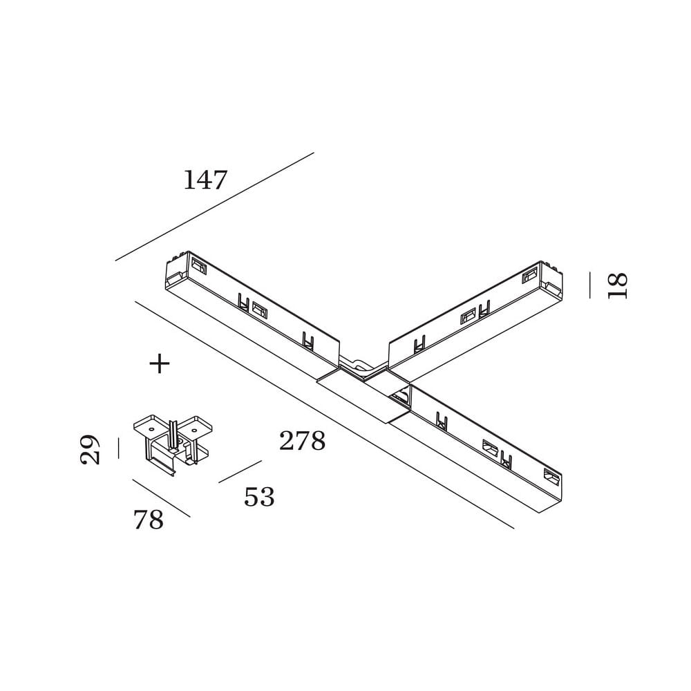 T-Verbinder für STREX System, Aufbau, 48V, 15A, DALI, elektrischer/mechanischer Anschluss, weiß