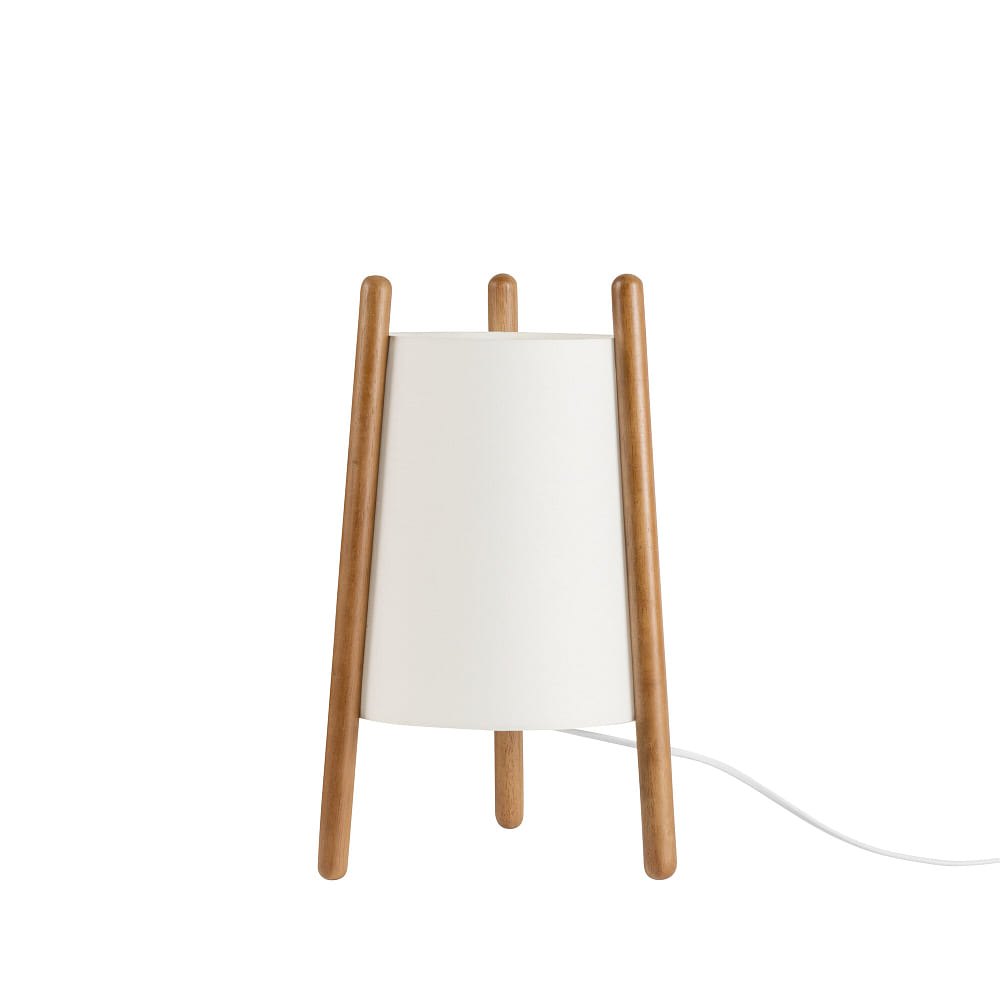 Tischleuchte WOODY, E27, Höhe 41cm, Holz beige / Textilschirm weiß