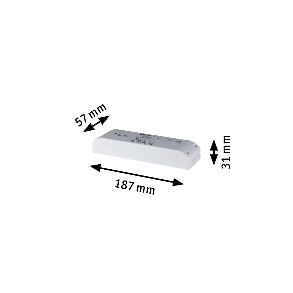 The transformer is made of high-quality plastic and kept in a simple white color. With protection class 2 and IP20 protection rating, it is protected against contact and meets all necessary safety standards. The mains connection terminal ensures a safe and easy connection to the power grid. Weighing only 0.164 kg, the transformer is also easy to handle and flexibly deployable. This product from Paulmann is the perfect choice for anyone looking for a reliable and powerful transformer solution.