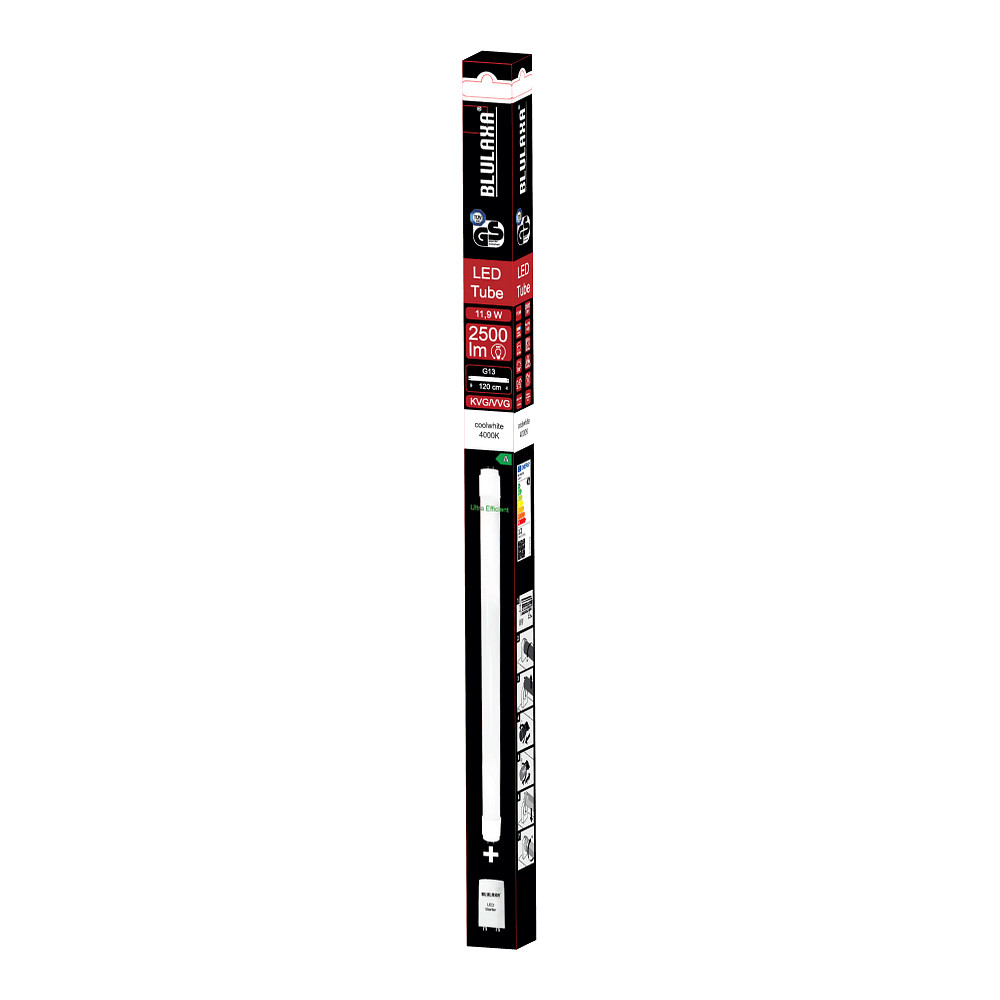 Il tubo LED in vetro Blulaxa T8 è una lampada tubolare moderna con un consumo energetico di soli 11,9 watt, offrendo al contempo un flusso luminoso potente di 2500 lumen. Con un'efficienza luminosa di 210 lumen per watt, è uno dei prodotti più efficienti sul mercato. Il suo colore di luce neutro a 4000 Kelvin fornisce un'illuminazione piacevole e naturale con un alto indice di resa cromatica superiore a 80 Ra. Questa combinazione rende il tubo ideale per chi cerca un'illuminazione brillante e a risparmio energetico.