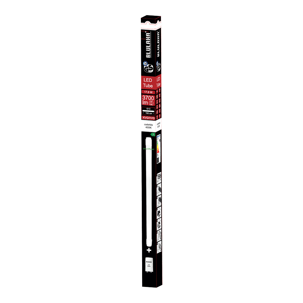 Il tubo in vetro LED Blulaxa T8 impressiona per un’efficienza luminosa eccezionale di 210 lumen per watt e un flusso luminoso di 3700 lumen. Con una temperatura di colore di 4000K, produce una luce bianca neutra piacevole che garantisce un’illuminazione chiara e naturale. Grazie a un angolo di luce di 300°, la luce si distribuisce in modo uniforme e senza abbagliamento in tutte le direzioni. Questo tubo è ideale per gli utenti che danno priorità ad un’elevata efficienza e a un’ottima qualità della luce.