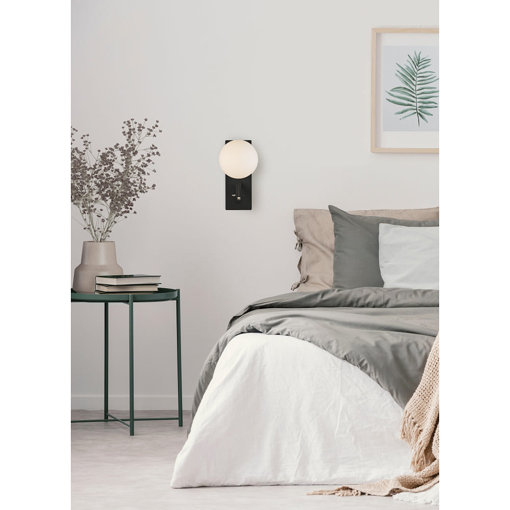 wall luminaire KIN 16/8169 with USB connection, adjustable IP20, opal, black