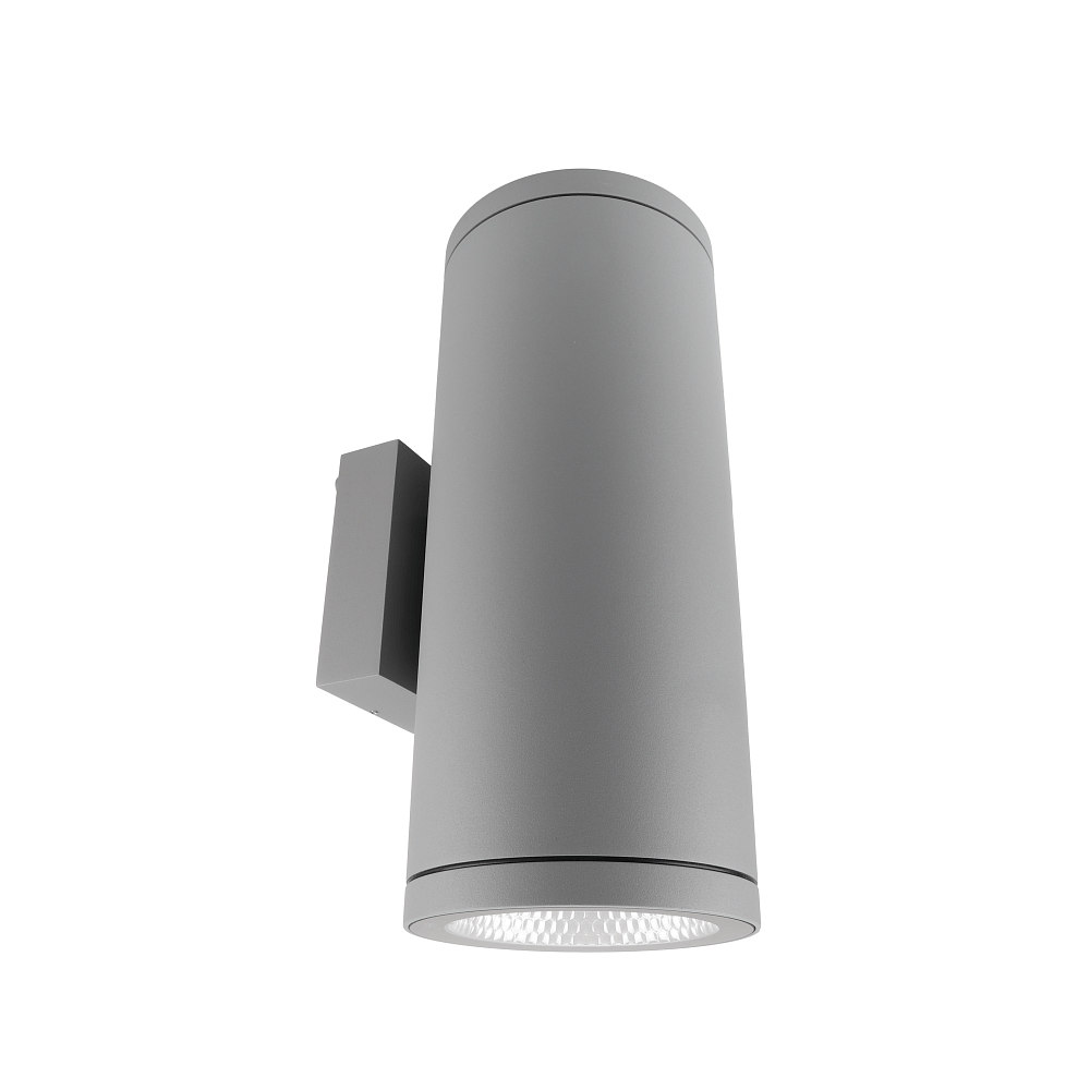 The SHORELINE PRO ROUND 140 UP&DOWN is an elegant LED wall light from Deko-Light, distinguished by its round cylindrical housing with a diameter of 14 cm. With a height of 33.2 cm and a depth of 18 cm, the light gray painted fixture stylishly integrates into various environments. It is designed as a surface-mounted light and is perfect for accent lighting, facade illumination, or as a decorative spotlight. The robust design ensures a long lifespan of up to 50,000 hours, making the light a reliable source of illumination.