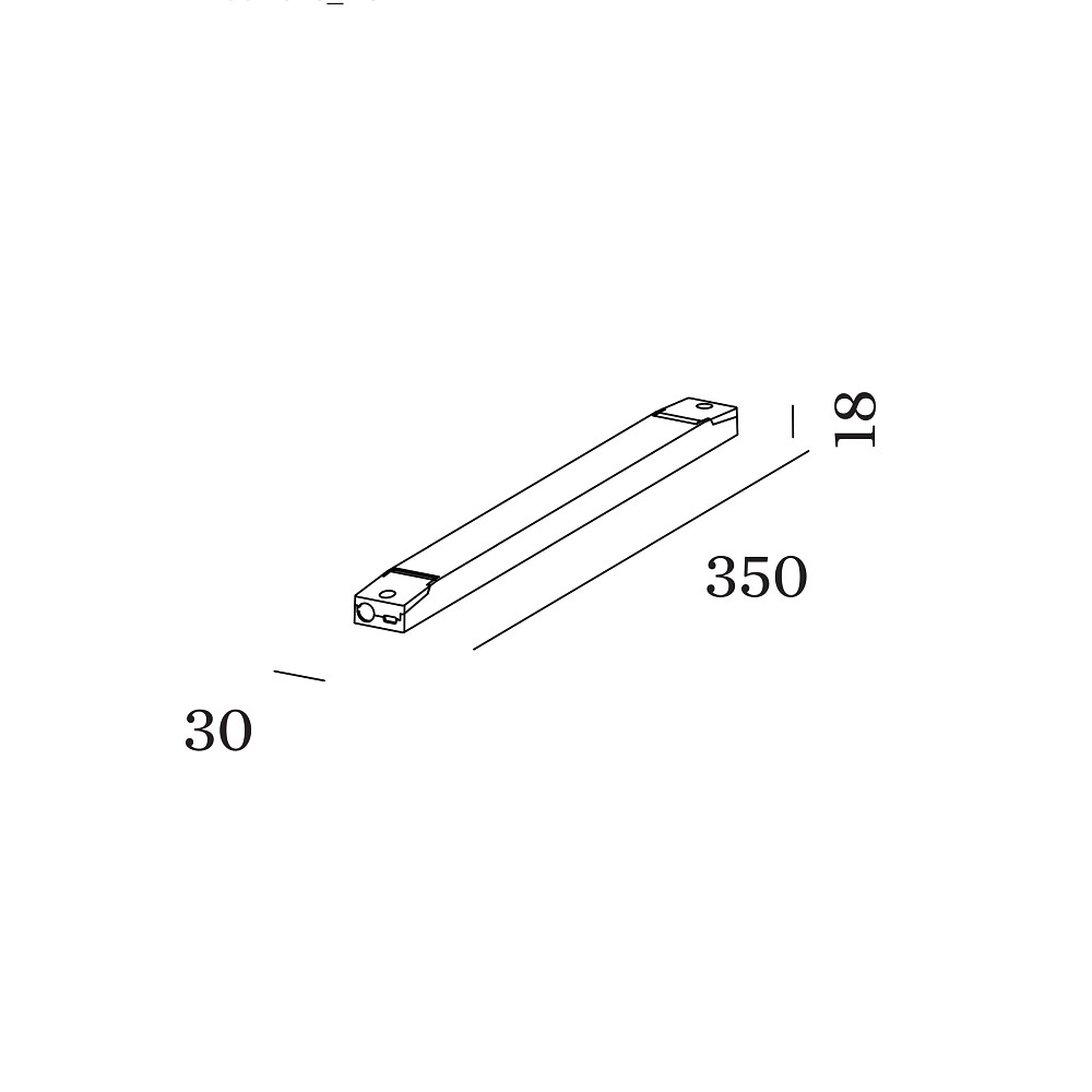 Die Abmessungen des externen LED Treibers betragen L∕ B∕ H: 35∕ 3∕ 1,8 cm. Dieses Zubehör ist speziell für den Anschluss an vorhandene Einspeiser konzipiert und eignet sich zur Versorgung von Leuchten bis zu 100 Watt. Es handelt sich um eine schaltbare Version, die für Pendel-Schienen (SUSPENDED) geeignet ist.